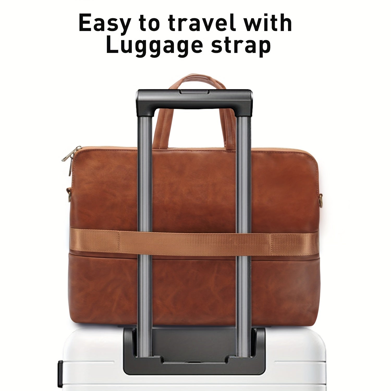 Kamlui Chic Waterdichte Laptoptas voor Vrouwen - Slank & Stijlvol, Geschikt voor 39.62cm tot 40.64cm voor MacBook Air Pro & HP, TSA-Goedgekeurde Kunstlederen Aktetas met Trolleyhuls en Notitieboekje Vak, Bruin