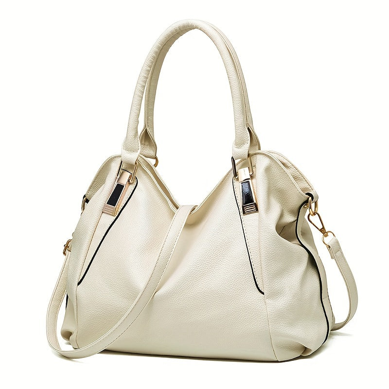 Vrouwen Kunstleren Handtas - Grote Capaciteit, Zachte Schoudertas met Ritssluiting, Messenger Stijl, Rand Geverfd, Veelzijdig voor Vrouwen van Middelbare Leeftijd - Verkrijgbaar in Wit, Zwart, Blauw, Bordeauxrood